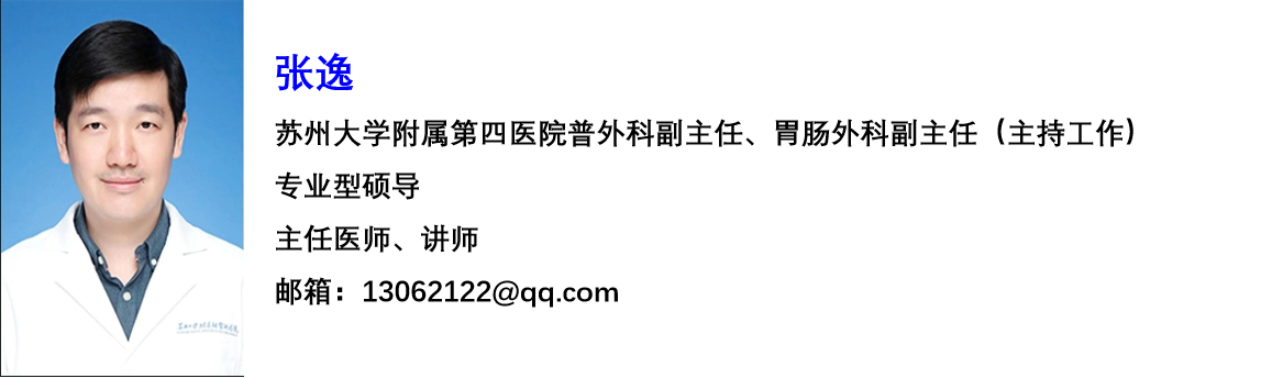 张逸,男,医学博士,主任医师、讲师,苏州大学附属第四医院普外科副主任、胃肠外科副主任(主持工作)。2004年入职苏州大学附属第一医院普外科,2020年参与苏州大学附属第四医院医教研工作。专业上擅长胃肠道良恶性肿瘤、减重手术,各种腹外疝的微创外科治疗,率先开展“达芬奇”机器人手术。学术上发表论文十余篇,担任《新编外科学基础与临床实践》、《现代普通外科临床诊治与新进展》副主编。目前承担苏州市科技局民生科技项目3项。任职中国抗癌协会大肠癌委员会精准赋能专家委员会委员、江苏省抗癌协会大肠癌专委会委员、江苏省医师协会创伤外科医师分会委员、苏州市医学会普外科分会委员、苏州市医学会普外科分会结直肠学组副组长、苏州市医学会普外科分会胃肠学组委员、苏州市医学会普外科分会NOSES学组委员、苏州市医学会抗癌协会胃肠间质瘤专委会委员等。