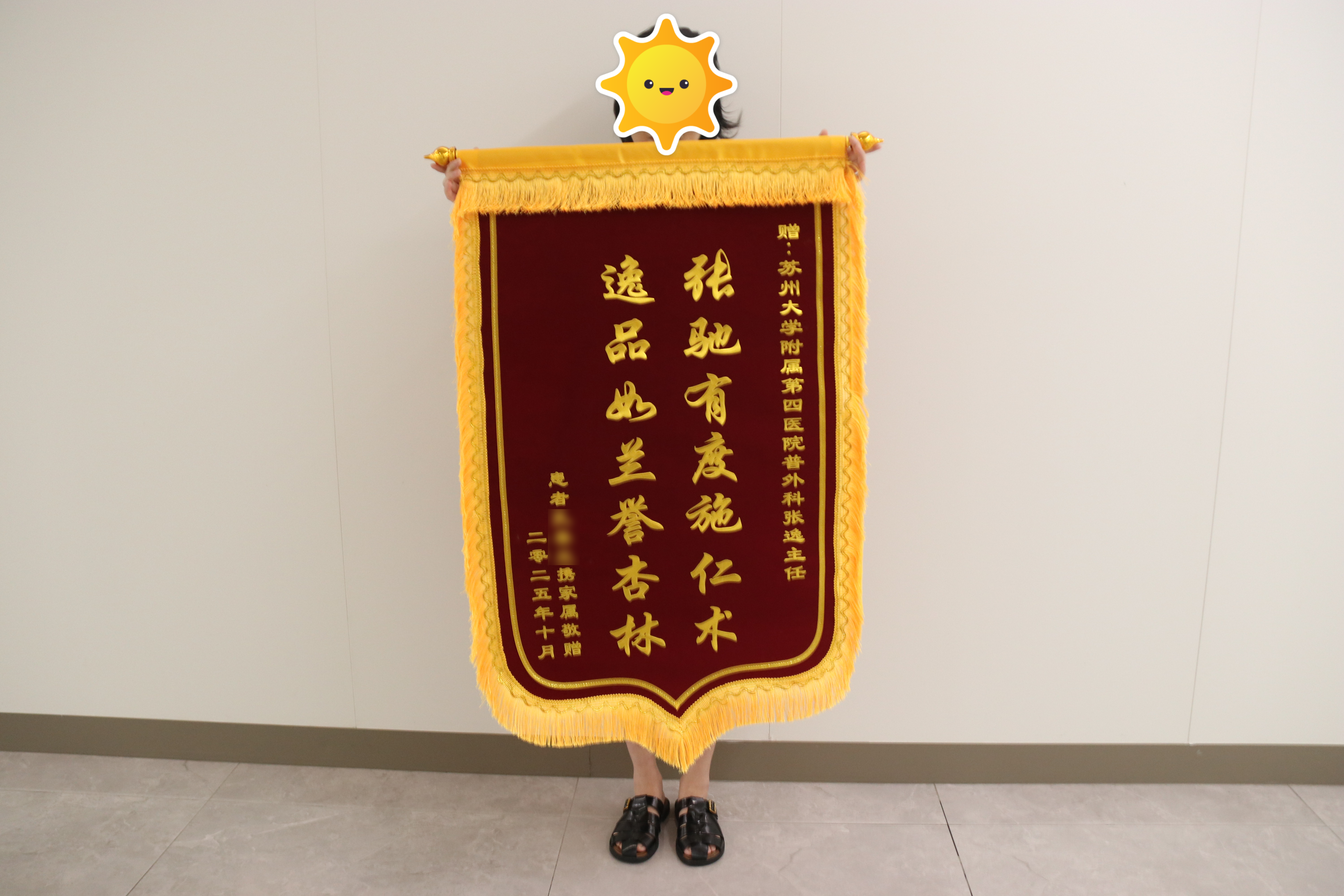 患者孔女士及家人赠送锦旗感谢信等感谢我院普外科李德春教授、张逸副主任医师及全体医护人员