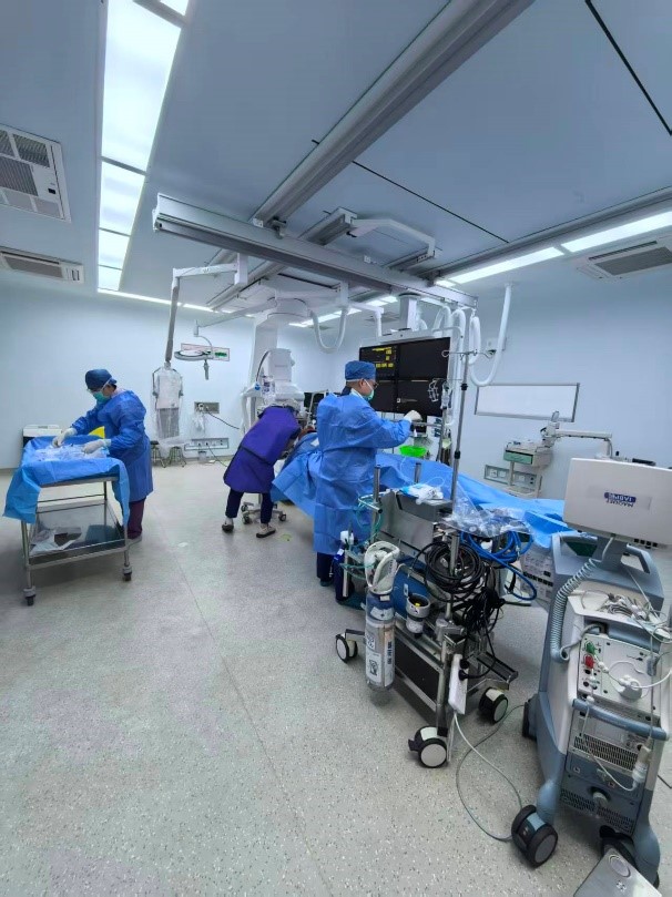 心内科团队迅速完成造影术前准备,患者由急诊ECMO团队携带监护仪、抢救药品、除颤仪、呼吸机、ECMO平稳转运至导管室。心内科团队术中顺利疏通病变血管,随后转入急诊ICU继续完成脑复苏等支持治疗。