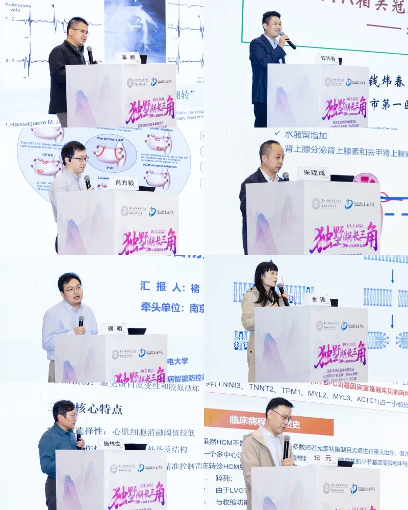 无锡市第二人民医院金艳副教授从原理到临床全景解读“脉冲电场消融在房颤治疗中的优势”;苏州大学附属第二医院李晖副主任则以前瞻性病例展示“前庭电位指导的房颤消融”;南京市第一医院钱炜春副主任聚焦安全性,剖析“PFA相关冠脉痉挛”的发生机制与应对策略;常州市第二人民医院纪元主任带来了“肥心病猝死风险等级分层”话题的分享;南京市第一医院朱建成主任畅谈“RDN多领域应用及未来发展”,展望肾动脉消融从高血压走向代谢综合征的广阔前景;江苏省人民医院褚明副教授介绍了“重大慢病数智整合防控的思考和泰州实践”,分享基层医疗数字平台的建设经验;温州医科大学第一附属医院肖方毅主任汇报了“PFA在持续性房颤中应用的研究进展”;南通大学附属医院施林生副教授呈现了“脉冲场消融的期许与现实:循证医学的审视”,用系统评价方式提醒学界在拥抱新技术同时仍需长期随访与真实世界证据。