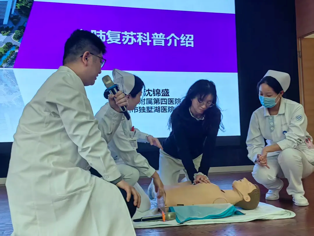 11月19日下午,苏大附四院心内科段洋副主任医师和崔飞飞护士长带领心内科团队前往苏州工业园区领科高级中学,为师生开展心肺复苏急救知识讲座和技能培训。