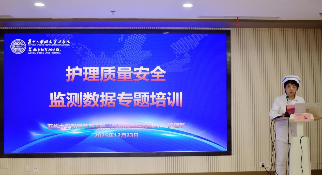 为深入落实医院“创三甲、迎国考”工作部署,筑牢护理质量管理根基,12月23日,苏州大学附属第四医院护理部成功举办护理质量安全监测数据专题培训。本次培训特邀苏州大学附属第一医院护理部常务副主任眭文洁来院授课,聚焦“护理质量安全监测数据解读与分析”,着力强化护理队伍数据思维,提升数据应用能力,为医院高质量发展与等级评审注入专业动能。培训由护理部王洁主任主持,全院护士长、护理质控员及骨干参加。
