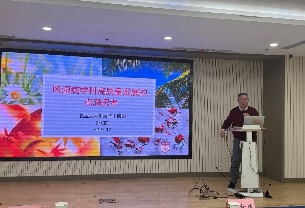 在专题报告环节,邹和建教授以“风湿病学科高质量发展”为题,深入剖析了当前学科发展现状与面临的机遇挑战。他指出,随着国内外学科差距逐渐缩小,“中心城市”的学术辐射效应日益扁平化,医保政策与属地化就医等因素也在深刻影响学科发展格局。邹教授强调学科高质量发展需明确战略定位、制定可行策略,集中资源打造特色品牌,并通过“借鸡生蛋、借船出海”等灵活机制培育人才,借助全方位品牌建设推动学科向专业化、国际化迈进。