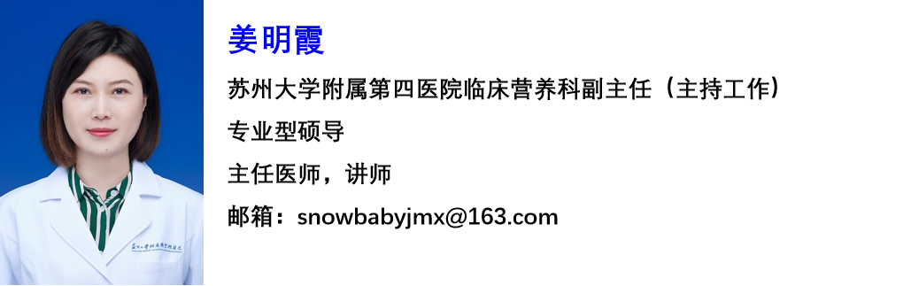 姜明霞,女,医学博士,主任医师,讲师,毕业于东南大学医学院。2008年10月-2022年5月任职于中国人民解放军东部战区总医院营养科,现任苏州大学附属第四医院临床营养科副主任(主持工作)。苏州市“姑苏卫生人才计划”项目B类特聘人才,苏州市“工业园区卫生人才支持计划”项目B类特聘人才。