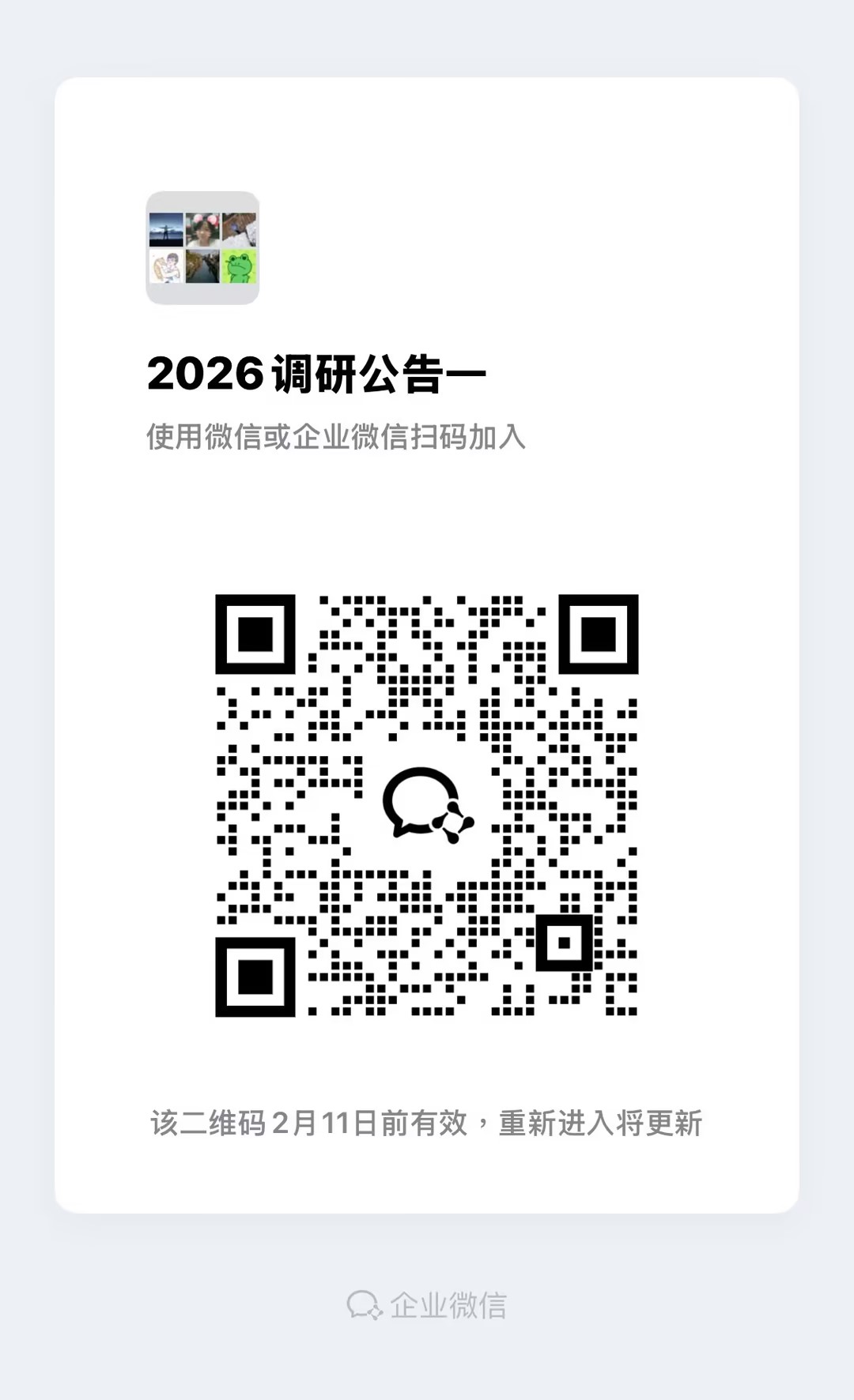 9. 各报名公司扫码加入调研公告群(群二维码见附件5),并修改备注名为报名公司名称,方便后续通知参加介绍会。