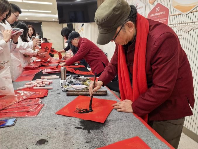活动现场笔墨书香与欢声笑语交织萦绕,暖意融融、年味十足。这份承载着中华优秀传统文化的新春祝福,帮助职工们感受传统节日的独特魅力,也为医院营造出浓厚的节日氛围,进一步增强了职工的归属感和团队凝聚力。