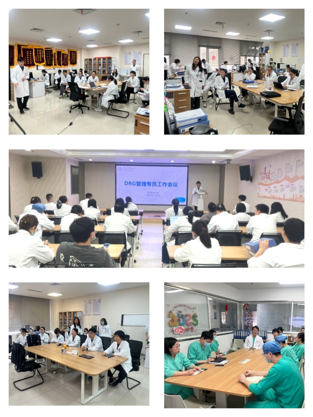 一方面,医保办公室组织全院DRG专员开展专项培训。会议结合JS-DRG 2.0 1月份实际运行数据,聚焦新分组规则下的实操要点、权重结构及关键质控要素,着力培养一支既精通临床业务、又熟悉医保政策的骨干队伍,确保政策理解到位、执行精准。另一方面,医保办公室深入胸外科、老年医学科、泌尿外科、呼吸与危重症医学科、普外科、神经内科、急诊医学科、重症医学科、血管外科与介入科等重点临床科室,开展定制化培训。各场培训结合科室病种结构,以1月份数据为基础,解析分组逻辑与关键调整,重点阐释基金使用规范与监管要求,引导医务人员在保障医疗质量的同时,提升诊疗与费用管理的规范性、合理性。