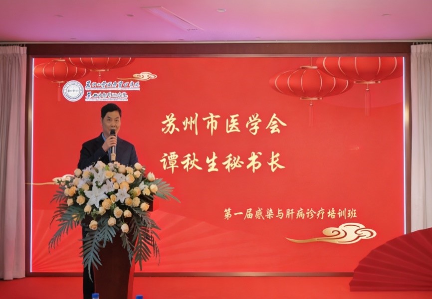 苏州市医学会谭秋生秘书长对我院举办此次培训班给予了高度评价。他表示,苏州市医学会始终致力于推动医学学术交流与学科发展,并对继续医学教育提出了殷切期望。他充分肯定了我院在感染与肝病领域所做的工作,并希望“独墅医帜”系列学术活动能够持续办下去,办出特色、办出水平,为广大医务人员提供更多高质量的学习机会。