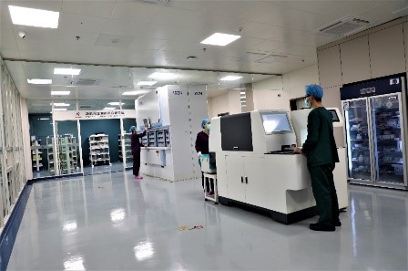 静脉药物调配中心(PIVAS)实行全流程信息化建设,依托先进的智能设备,实现了贴水、摆药、分拣、调配等流程的自动化操作,提高药师工作效率和准确性,保护药师的调配安全,完成了对静脉药物调配的精准管理,为患者提供更加安全、可靠的药学服务。