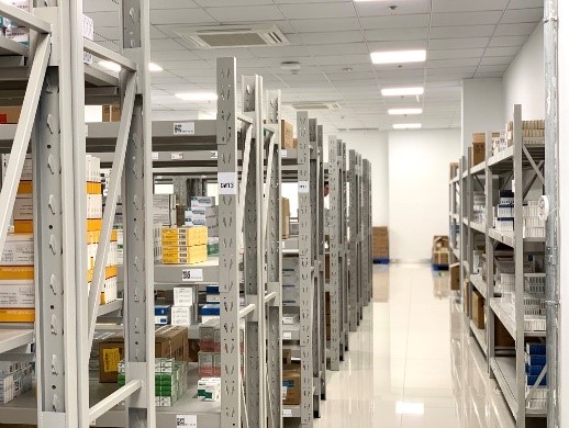 药库负责全院药品供应管理工作,利用完备的药品储存设施对药品进行分类储存管理。利用智能化药品信息管理系统与药物物流设备,规范药品采购、验收、入库、养护、发放和质量管理的过程,减少药品周转时间,降本增效,以实现自动化、信息化和效益化药品管理的目标。